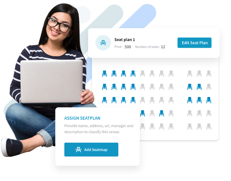 Set the total number of seats, seat names, and ticket prices for each event location. Your customers can choose which seat they want to buy by clicking on a virtual seat plan from the front end, which you can check later from the event dashboard.