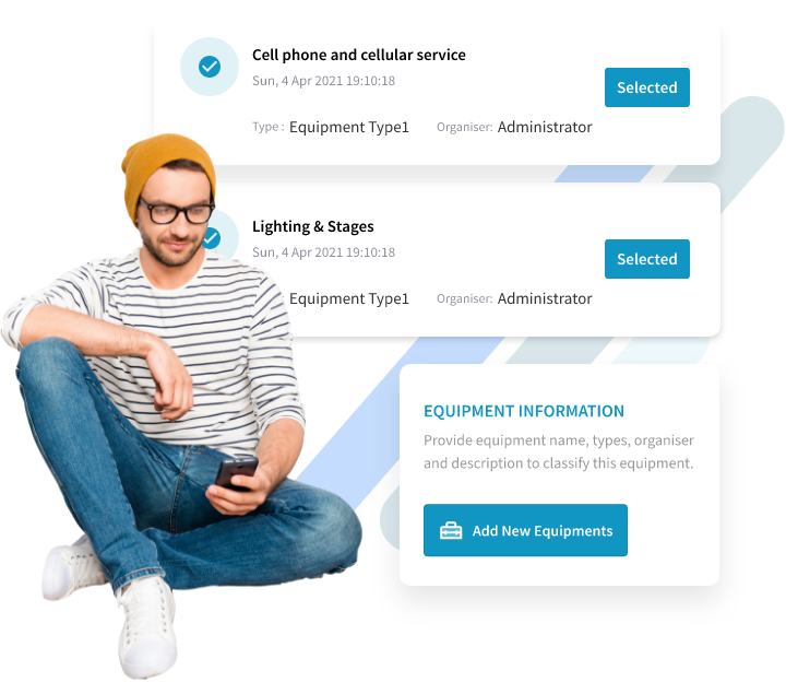 Keep track of all your event equipment easily from the backend. Create equipment entries and assign them to different events. This helps you keep note of everything, and you can quickly check if all the equipment you need for an event are available.